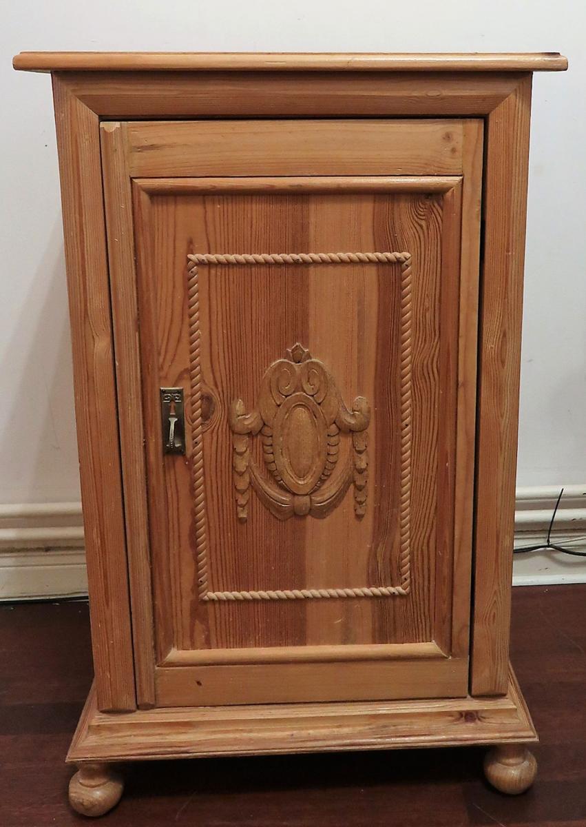 Zum Verkauf steht ein wohnfertiger Nachttisch / Beistellschrank. Dieses 1türige Möbelstück verfügt über 2 Einlegeböden und originalem Beschlag. Auf Grund der Abmaße als großer Nachttisch oder als Beistellschrank zu nutzen.