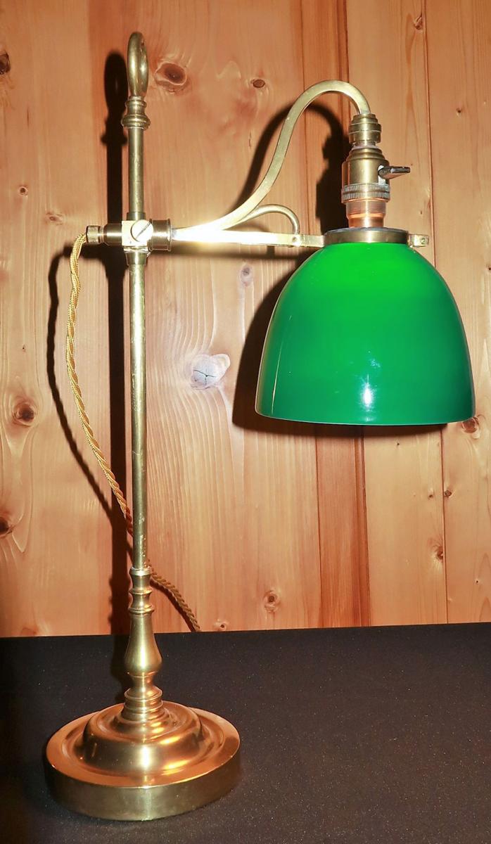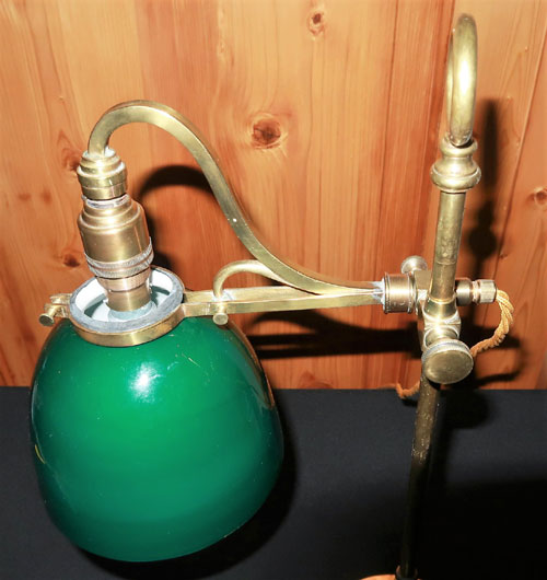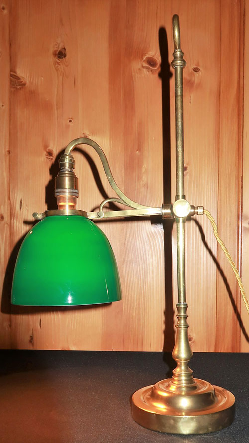 Messing-Tischleuchte mit grünem Glasschirm
