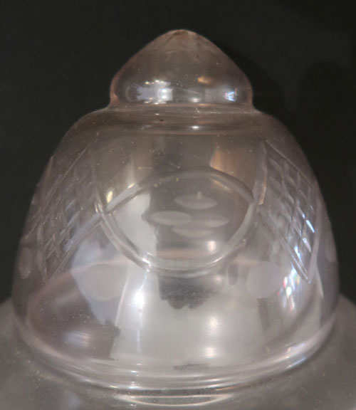 Zum Verkauf steht ein antikes Lampenglas in Zapfenform mit bauchigem Rand und Schliff-Motiven.