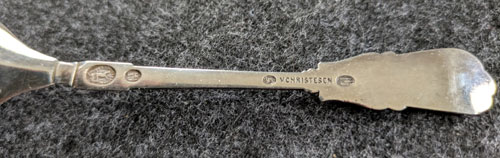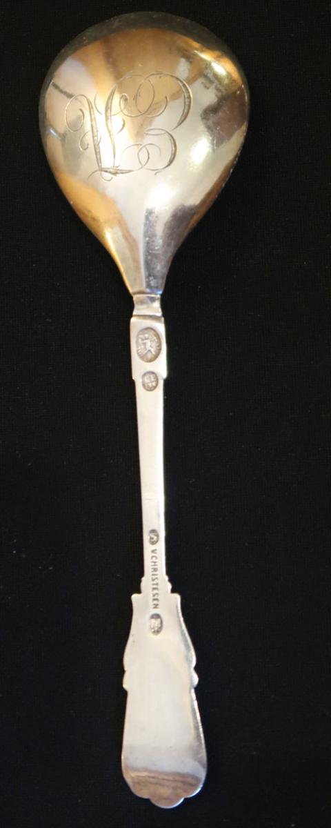 Zum Verkauf steht eine absolute Rarität. Ein antiker Silberlöffel aus der Manufaktur V. Christesen aus Kopenhagen. Dieser mehrfach punzierte Sahnelöffel ist ein traumhaft schönes Stück aus einem hochwertigen Nachlass.