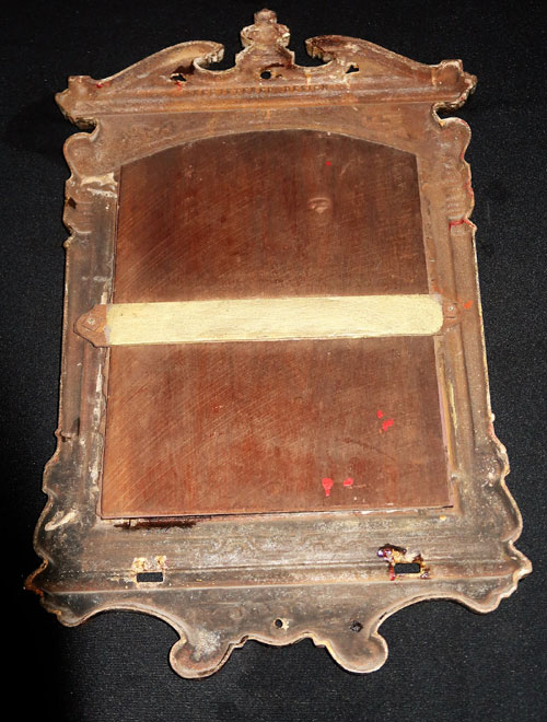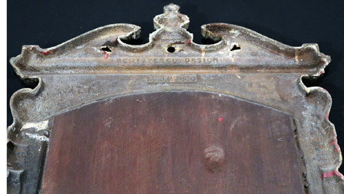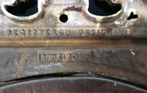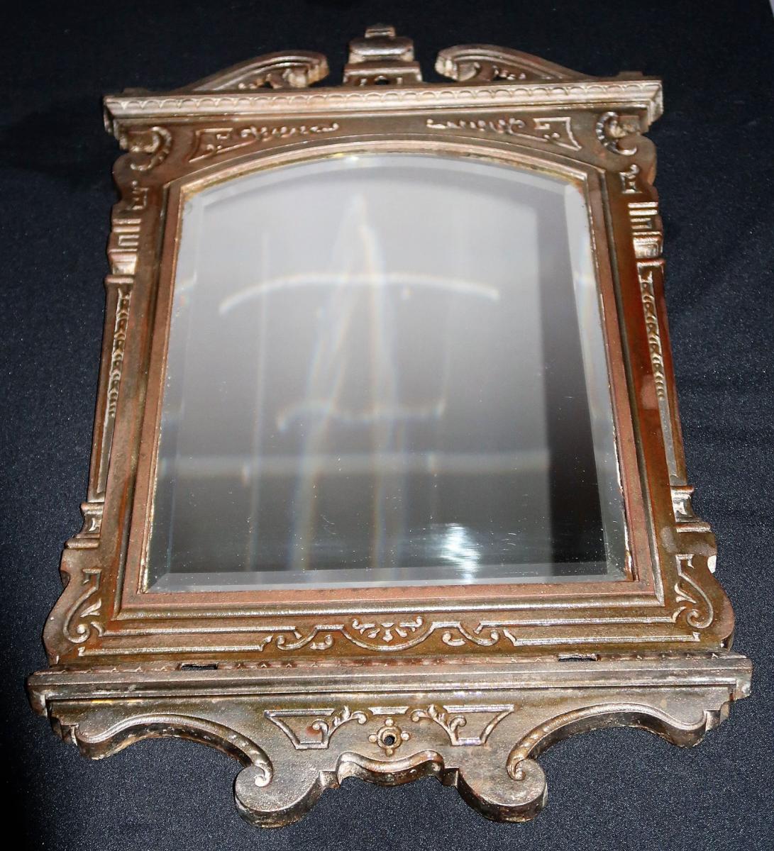 Zum Verkauf steht eine kleine Rarität; dieser Wandspiegel aus Eisen wurde im Jugendstil gefertigt. Der Spiegel hat eine geschliffene Scheibe und hat eine Registrierung für Design Nr 202144