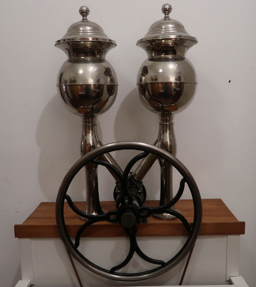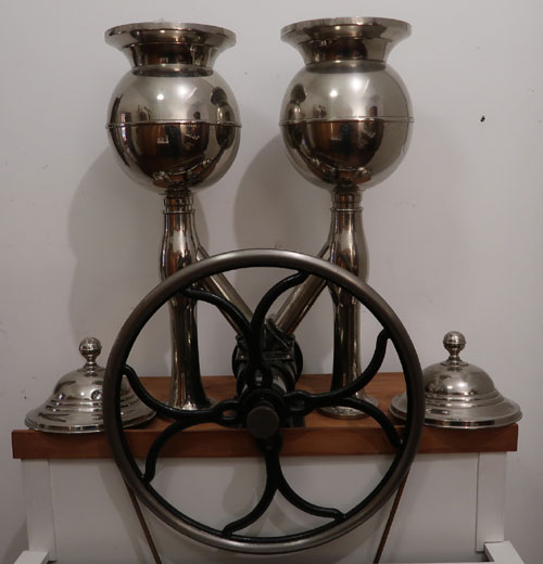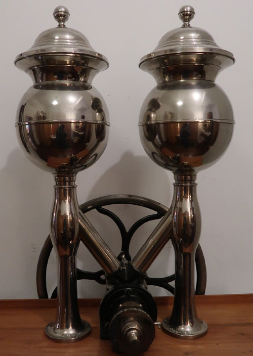 Antike funktionstüchtige Standkaffeemühle mit 2 Trichtern