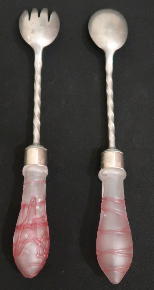 Art Deko Salatbesteck mit Glasgriffen