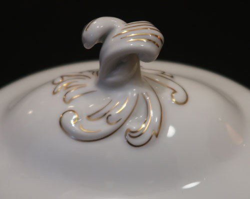 Zum Verkauf steht eine Terrine mit 1,5 Liter Fassungsvermögen der Manufaktur Hutschenreuther, Form Maria Theresia, Dekor Fürstenau. Dieses Dekor wird nicht mehr produziert. Die Terrine ist in einem ausgezeichneten, unbeschädigten und ungenutztem Zustand.