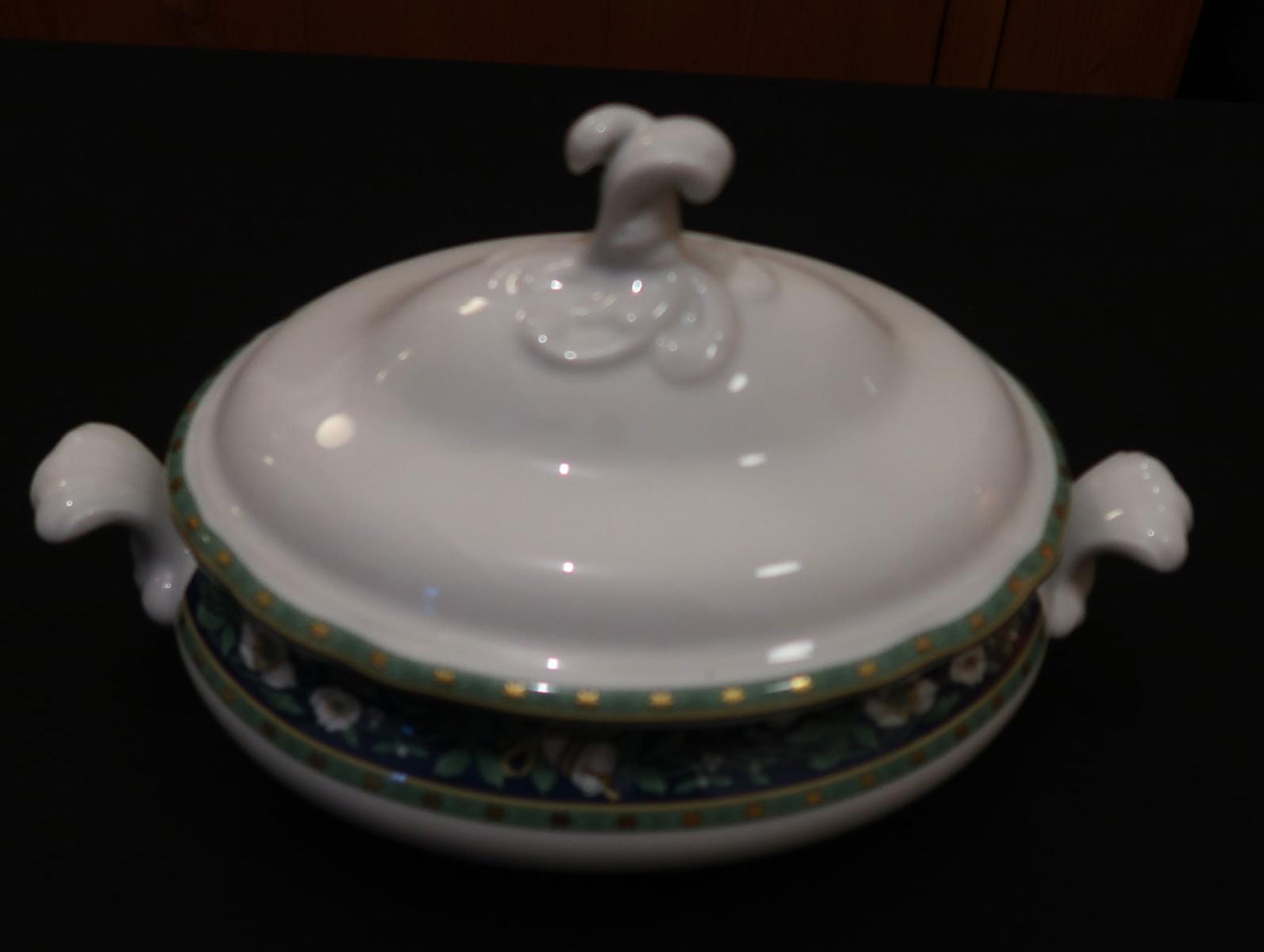 Zum Verkauf steht eine Terrine mit 1,5 Liter Fassungsvermögen der Manufaktur Hutschenreuther, Form Maria Theresia, Dekor Winterzeit. Dieses Dekor wird nicht mehr produziert. Die Terrine ist in einem ausgezeichneten, unbeschädigten und ungenutztem Zustand.